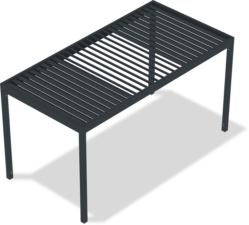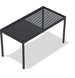 Voľne stojaca pergola, lamely rovnobežne s kratšou stranou pergoly