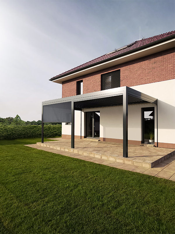 Prednosťou pergoly ARTOSI je možnosť rozdelenia strechy na viac nezávislých sekcií, ktoré je možné ovládať samostatne. Môžete tak komfortne regulovať prúdenie svetla, tepla aj vzduchu v ľubovoľnej časti pergoly podľa pozície slnečných lúčov počas celého dňa. Pre väčší komfort sa dajú boky pergoly ľahko doplniť o screenové látkové rolety.