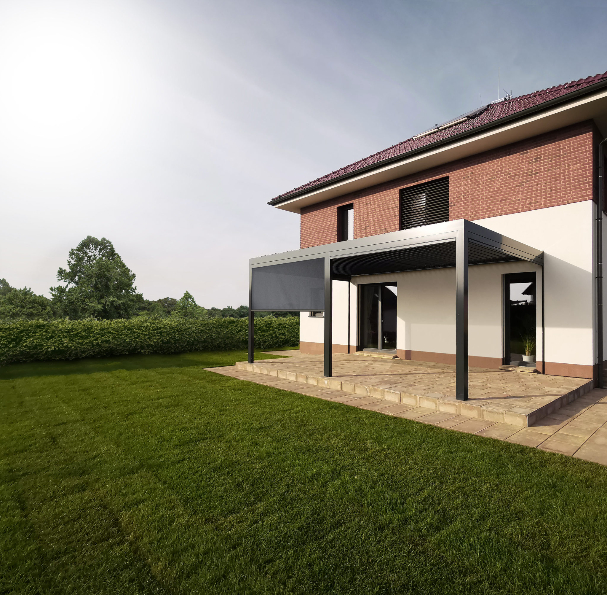 Samonosná bioklimatická pergola ARTOSI s inovatívnym a čistým dizajnom. Hliníkové lamely je možné orientovať od 0° do 130°. Samozrejmosťou je tesnenie a sklon lamiel pre riadený odtok vody stojkou. Do pergoly je možné integrovať tieniace prvky a LED osvetlenie.